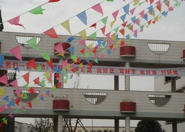 新学期,新气象。为了把校园装扮的焕然一新,26日和27日,后勤工作人员也忙碌着,插彩旗、拉横幅,经过这些装扮师的精心设计,校园变得越来越漂亮了。“让书香浸润校园,让博雅成就人生”、“追求内涵发展,构建和谐校园;倾听花开声音,关注生命成长”,这横幅上的每一条标语无不体现了学校的办学理念、办学宗旨。“读好书、走好路、说好话、写好字、做好操、扫好地”,从小事做起,从细节做起,教育学生做一个爱学习、懂礼貌、讲文明的好学生。