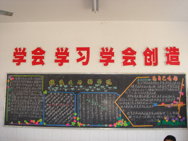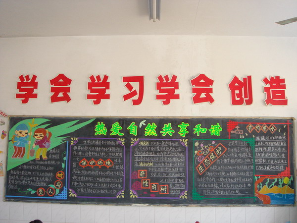 大地回春,风和日丽。为了让大地更绿,校园更美,我校各班开展了以“绿色环保”为主题的板报活动。孩子们自主设计、绘画、书写,给教室增添了一道亮丽的风景线。孩子们设计的板报内容丰富多彩,版面设计各具特色,有的设计成树叶形状的版面,引人注目;有的环环相扣,新颖独特;有的色彩鲜艳,……那一块块精彩纷呈的板报给人一种赏心悦目的感觉。最后,通过评比,各年段分别评出了奖次。这次评比,不仅为学校的“绿色节”系列活动又增添了一片“新绿”,而且队员们的能力与自信在活动中淋漓尽致地发挥了出来,环保意识更是得到了增强,他们纷纷表示:“保护环境,从我做起”!