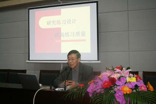 下午一点,义务教育课程标准实验教科书的副主审,沈重予特级教师为与会的所有老师作了题为《研究练习设计 提高练习质量》的讲座。沈主任首先谈起,自新课程实施以来,教师们把大部分的时间放在例题新授教学的研究上,一轮课改之后,我们教师需要重新面对和审视现在数学课堂中的“练习设计”。讲座中,沈主任分两部分对“练习活动”进行了阐述:第一部分帮助教师分析现行教材练习安排的“试一试”“想想做做、练一练”“练习”“复习”四大板块内容,建议教师用好教科书里的练习题;第二部分,沈主任理论联系实际,和老师们一起探讨了概念的练习、计算的练习、解决问题的练习、思维练习等领域的设计思路。最后,沈主任以“设计练习是技术,也是艺术”精妙语结束了他的讲座。