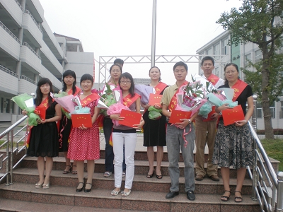 9月10日上午,西夏墅小学全体师生齐聚篮球场,为庆祝教师节活动举行了简短的升旗仪式,仪式由教导处王芳老师主持。“祝老师节日快乐!”的祝福声响彻上空,老师心里充满着阵阵暖意。质朴的语言,却表达了最真挚的感情。薛辉校长宣读了今年被评为“心目中的好老师”的名单,学生亲自为自己的老师送上了最美丽的鲜花。