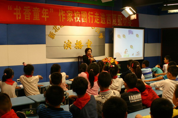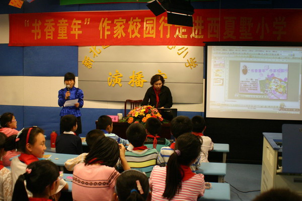 四月,樱花飘飞的日子,西小的校园处处飘溢着书香的气息,西小的孩子在这美丽的季节迎来了特殊的节日——读书节。5月6日,孩子们又迎来了令人兴奋的一天,迎来了我们期盼已久的客人——著名儿童文学作家 王一梅 老师。尊敬的 王 老师受邀来到我校作专题讲座,西夏墅中心小学全体师生参与了本次活动。