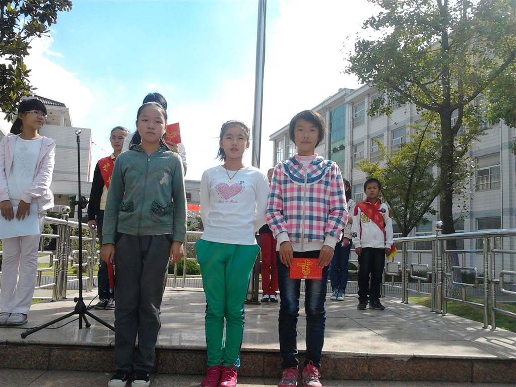 今天是10月8日,晴空万里,我们刚刚休完中秋国庆长假,西夏墅中心小学全体师生又一次相聚在操场上举行升旗仪式。在这次升旗仪式上,学生部的王部长告诉了我们一个振奋人心的消息,在“学雷锋、颂党恩、讲道德、见行动”征文活动中,我们学校选送的征文包揽了一等奖的一、二、三名,还有三位同学分别获得了二三等奖。哇!我们学校这么多同学获奖,真是太给力了。获奖队员的奖品十分丰厚,一、二、三等奖分别是150元、100元、50元的书卡。这五个人都像被被金蛋砸中了一样满面春风地走上领奖台,郑重地从王老师手里接过奖品,满心欢喜地在一起合了影。在场的同学都露出了羡慕的表情,都在暗自下定决心,下次要再有这样的征文比赛机会,一定不能错过。