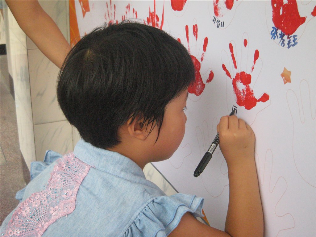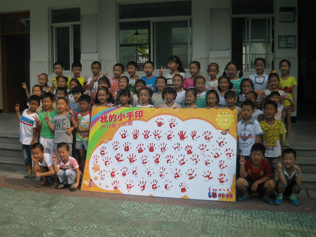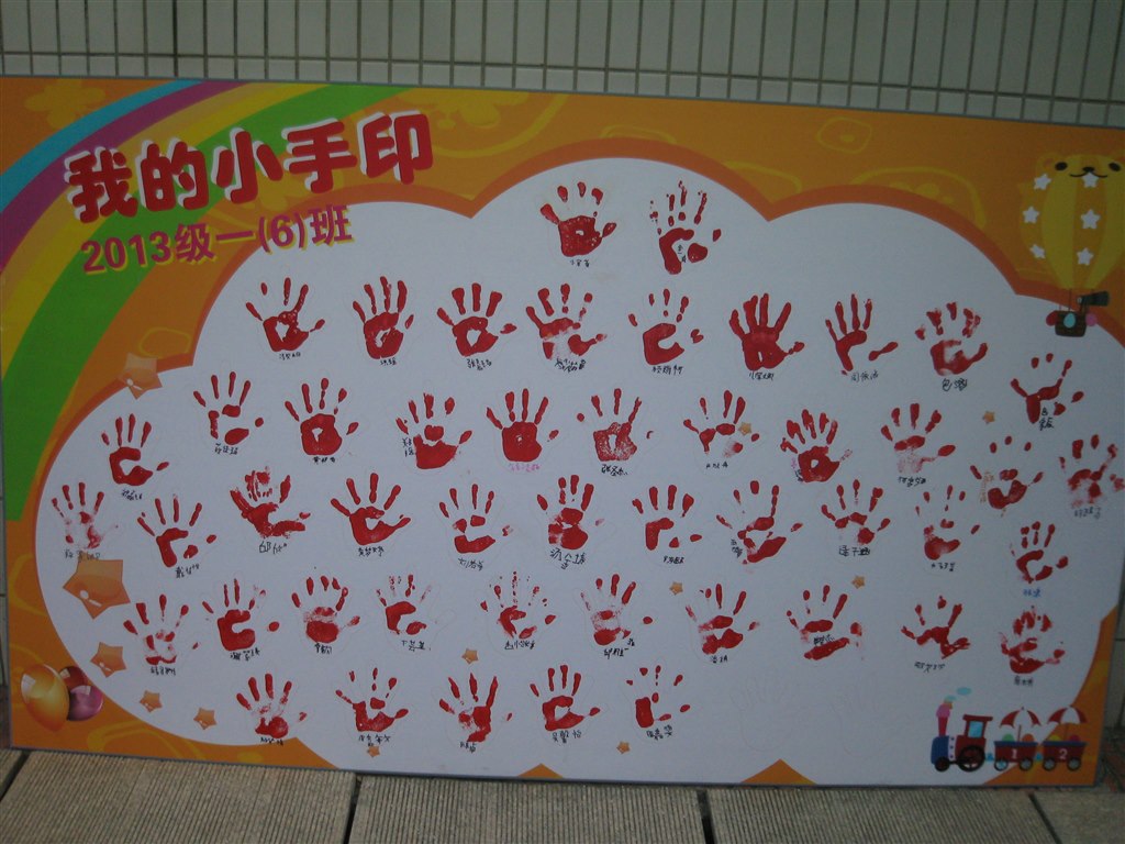 学校为每个班级都制作了手印模板,让每个孩子在上学的第一天留下珍贵的纪念。一个个鲜红的手印,像一朵朵含苞待放的花儿绽放,他们还用稚嫩的笔触在爸爸妈妈的帮助下一笔一划签上自己的大名。学校将把他们的手印塑封保存,待到六年之后的毕业典礼上再拿出来看一看、比一比,自己长大了多少,那将是一件多么有意义,多么让人欣喜的事呀!