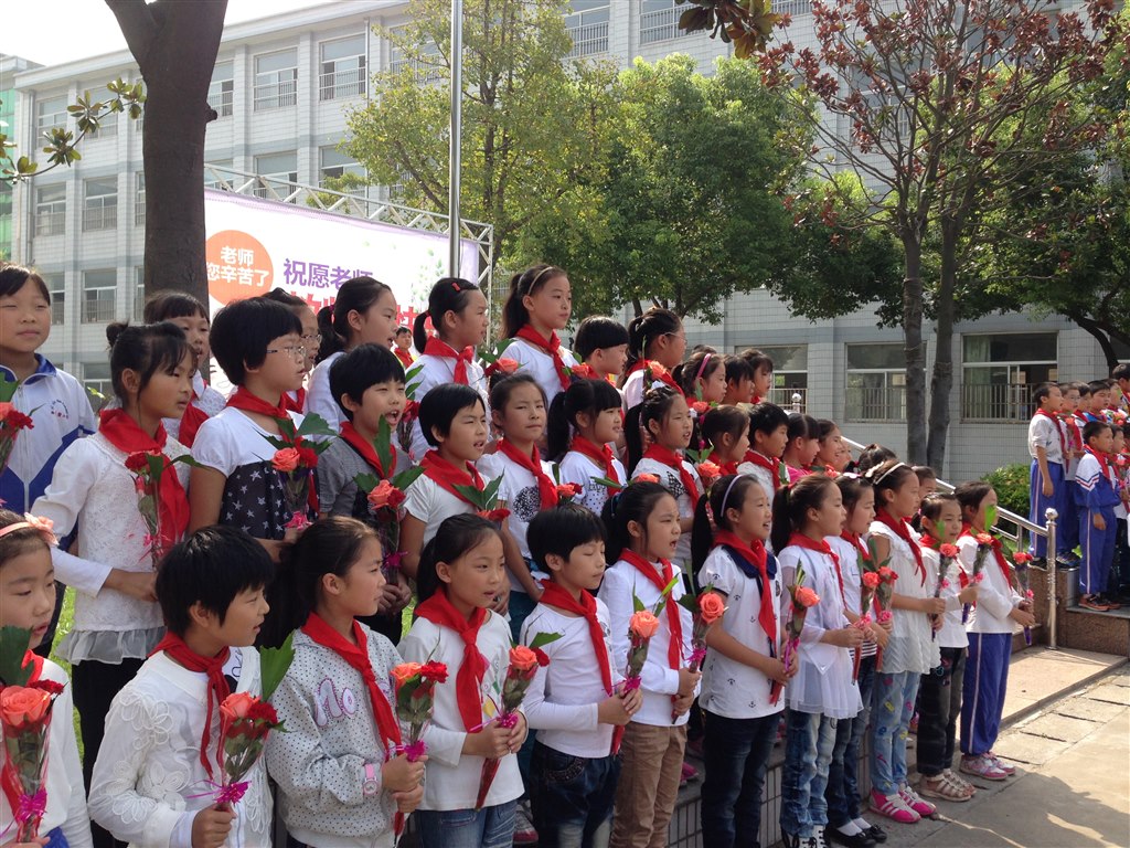金秋,散发着丹桂的磬香,金秋,弥漫着殷殷的情愫,一个期待在金秋的枝头悄然萌芽,一种热情和着金秋激情的节拍踏歌而来。9月9日上午西夏墅小学的师生们迎来了一个特殊的升旗仪式,那就是“老师,节日快乐”主题升旗仪式。