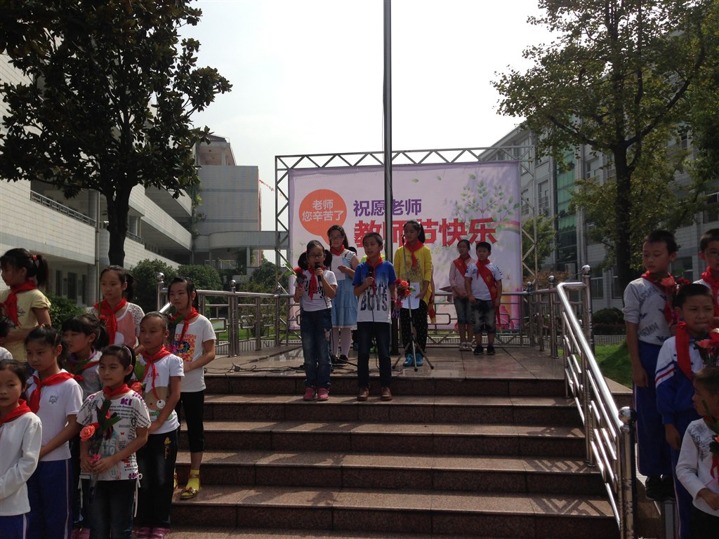 在仪式中孩子们用深情的朗诵,用优美的歌声,用美丽的鲜花给老师们带来了一个温馨、感动的节日祝贺,仪式的最后,孩子们用最响亮的声音喊出:“老师,谢谢您!老师,您辛苦了,!老师,节日快乐!”,大声地表达出了对老师最诚挚的爱。