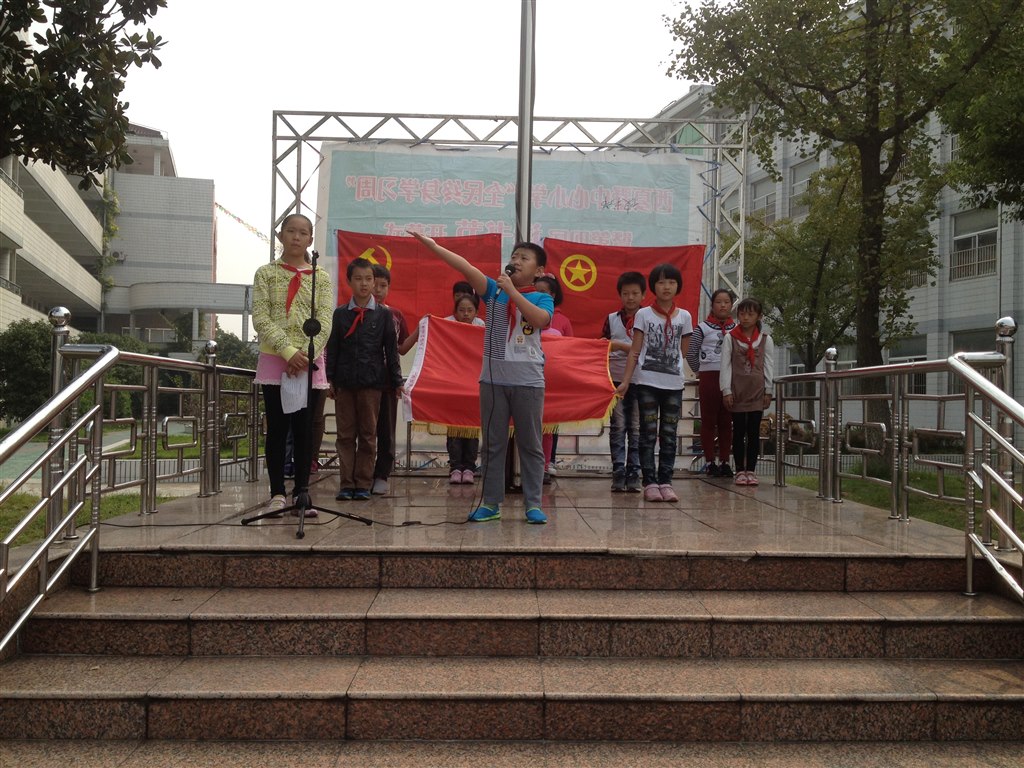 刚刚度过了一个神圣而伟大的节日,祖国母亲64岁的生日。当大家还沉浸在节日的气氛里时,11月11日,西小全师体生戴上鲜艳的红领巾齐聚操场,在党旗、团旗、和队旗下迎着10月桂花的芬芳共度了“红领巾相约中国梦”主题建队日的活动。活动中首先是王瑛老师给我们介绍了建队日的由来、规范了敬礼的姿势、并带领少先队员们进行呼号,接下来由六年级的两名队员结合“相约中国梦”的主题进行了激情昂扬的演讲,最后活动在队员们《中国少年先锋队队歌》嘹亮的歌声中结束了,活动虽然只有短短的二十分钟,但队员们却从活动中感受到了一份作为一名少先队员的自豪与责任,一份作为西小学生的骄傲与担待,愿队员们能脚踏实地,齐心协力,让明天因你的奋斗而精彩。