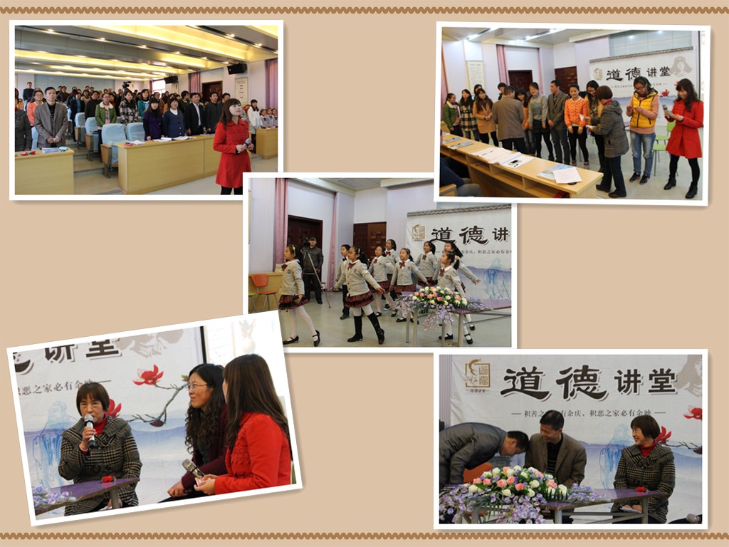 本次道德讲堂的主题是“教育在这里传承”,活动融入道德讲堂的七大元素,从唱歌曲、学模范、讲故事、谈感受、发善心、诵经典、送吉祥出发,在活动中退休教师给新教师们送教学心得感悟,传授班级管理经验,把自己始终奉行的“爱的教育是最成功的教育”的教学理念,制作贺卡送给刚刚踏上教师岗位的新教师;两位退休教师的家长代表们也真诚地用自己深深的鞠躬表达了自己内心的感激,学生代表更是送上了饱含深情的朗诵《老师,我是你放飞的一只鸽子》……整个活动,老师们静心参与,在一起聆听道德故事,沐浴道德阳光,感悟道德力量,让心灵在道德讲堂得以净化,让好心在道德讲堂得以滋长,也让西小的教育事业在道德讲堂得以传承与发扬。