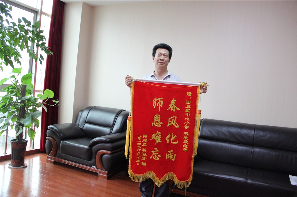 6月23日上午,西夏墅中心小学六(4)班靳何渊家长,将一面写着“春风化雨,师恩难忘”的锦旗和一封感谢信送到了我们校长室,以此表示对六(4)班班主任张老师关爱学生、无私奉献的感激之情。