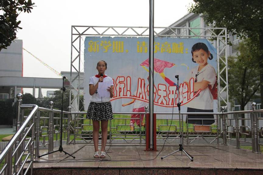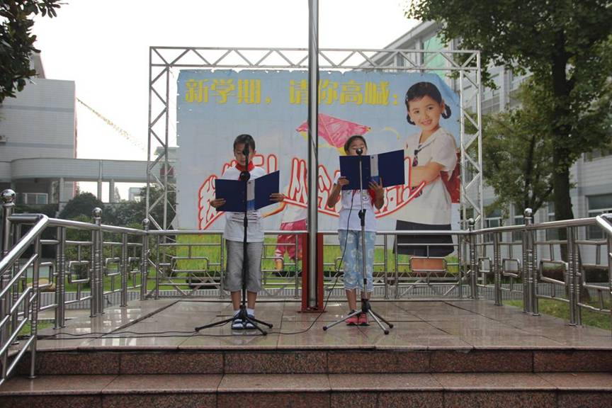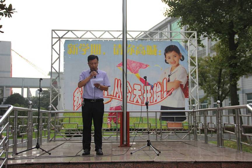 活动伊始,五星红旗伴随着庄严激昂地国歌,冉冉升起,再一次高高地飘扬在西小的上空,开学典礼拉开了帷幕。吴天一和刘畅同学深情朗诵的诗歌《开学了》,描绘了学校的新面貌,新气象;把同学们带入了丰富而又充满生气的校园生活场景中。接下来,由李校长为开学典礼致辞。李校长首先向全校师生表达了新学期的问候和祝愿;接着向师生通报了上学年学校师生获得的累累硕果;最后,李校长给同学们提出了新学期的四点希望,激励学生向着更高的目标奋进。之后,学校新进的老师站上升旗台,与全校师生见面,少先队员向他们献上了鲜花。这些新教师由此开启了人生如花似锦的教育生涯。新教师代表曾霆也代表新教师表态,必将发愤图强,踏实工作,不断开拓进取,为西小的发展,奉献自己的青春。最后,学校少先队大队长包梦钰同学向大家发出倡议,希望同学们在新的学期中能学会自主规范、自主学习、自主管理、自主发展,能养成独立能力,做学校班级的主人,为学校发展做出自己的努力。