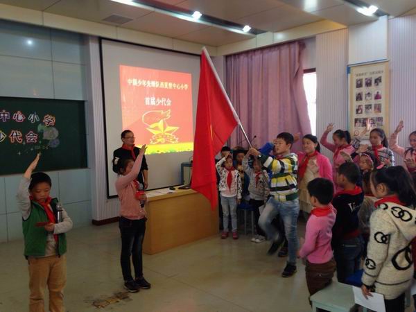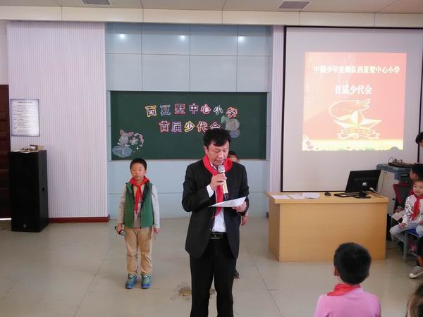 2014年11月6日 下午,西夏墅中心小学的174名少先队员代表聚集在星星火炬旗帜下,隆重举行学校第一届少代会。学校党支部李忠顺书记、大队辅导员王瑛老师、团员代表刘姝言老师,以及部分辅导员老师应邀参加了本次少代会。