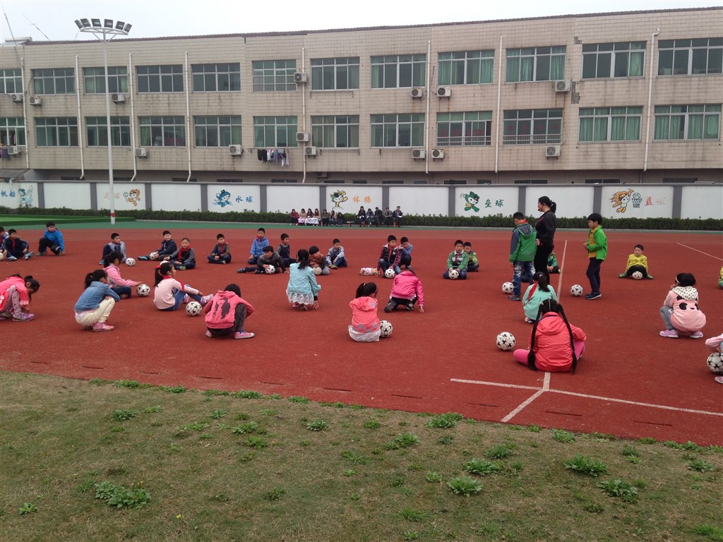 本次活动由体育组的恽彩红和殷彩萍两位老师执教。第一节是恽彩红老师执教的水平二足球:脚内侧传球、运球。恽老师在专心研读教材的基础,根据学生的实际水平精心设计了一系列符合学生认知水平的教学方法。教学中遵循由易到难、由扶到放、由观察到体验的教学法则。教学环节层层相扣,细节指导形象生动,教学评价贯穿课的始终。把学生虽然熟悉且从未亲身体验过的小足球脚内侧传球、运球上得特别的亲切与自然,为“让足球进校园”起到了抛砖引玉的作用。第二节单手肩上掷橄榄球由投掷出身的殷彩萍老师执教。她声音洪亮,示范极富鼓动性,学生个个摩拳擦掌,跃跃欲试。经过恽老师一节课的引导、激励、鞭策,单手肩上投掷水平有了明显长进。