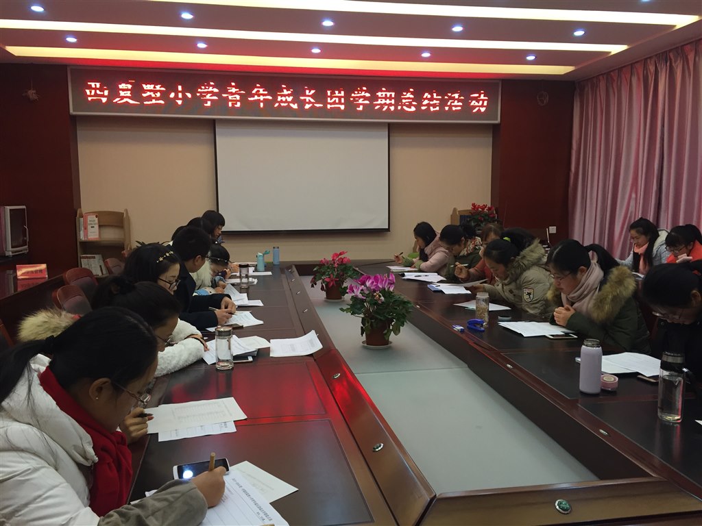 青年教师是学校的中坚力量,一直以来,我校都非常重视青年教师的成长。2016年1月20日上午,西夏墅小学在三楼会议室如期召开了2015年度的青年成长团学期总结活动。活动由教导处邹丽琴主任主持,张丽娟校长,方婷主任参加了本次活动。