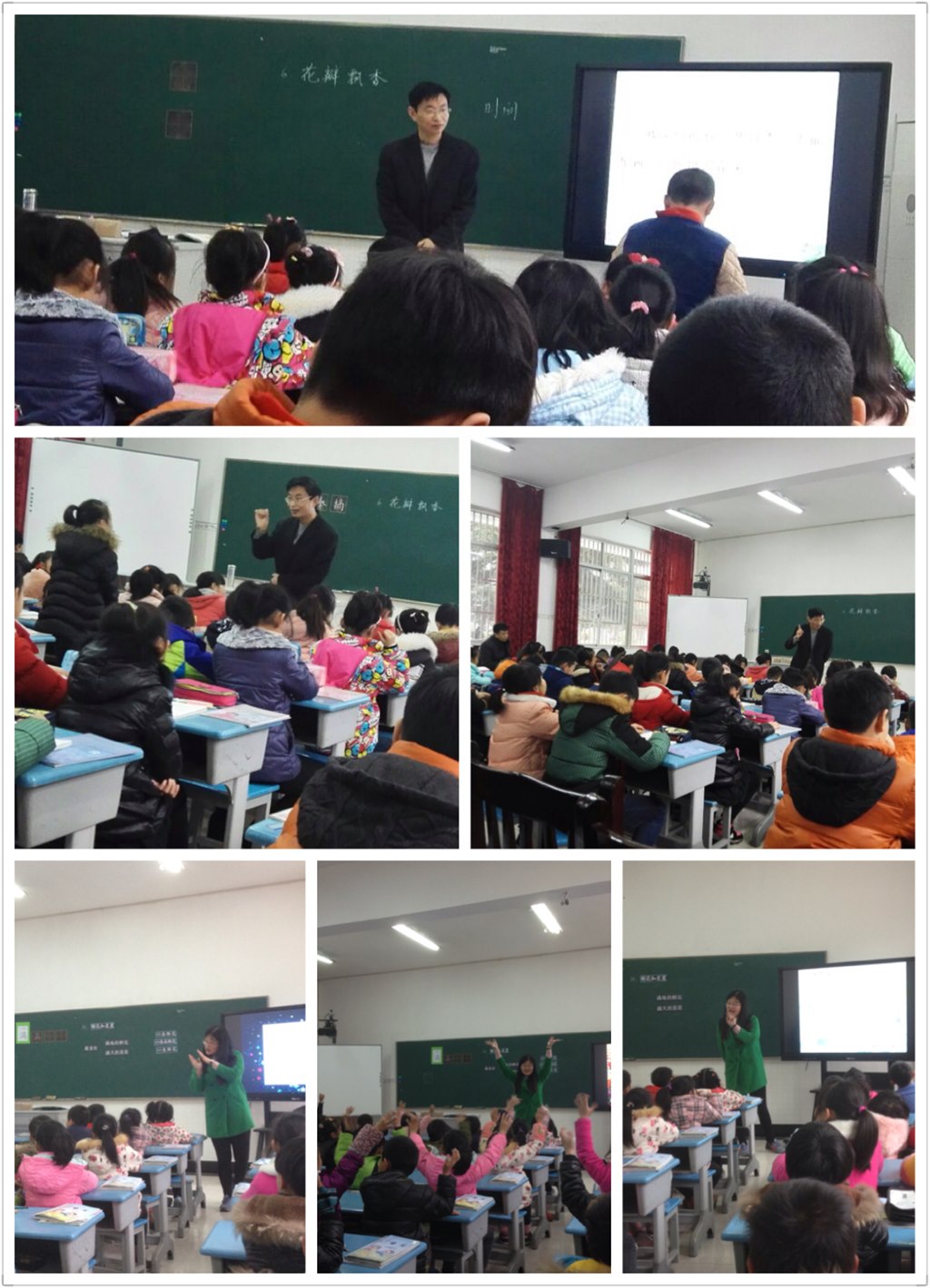 首先,薛校长展示了《花瓣飘香》的教学,大师的课堂呈现出他的许多智慧:一、关注文本的语言形式,带着孩子突破语言密码,把文本内容变为言语训练的依托,小小的“花瓣”迸发着他过人的智慧。二、关注学生关键能力的培养。他能准确把握三年级孩子的年段特征培养学生的概括能力,捕捉信息、删选信息、提取关键信息,把长文变成一句简明扼要的话,学生在层层递进中学会了概括的方法。三、关注文本的叙事结构和表达顺序,把一篇文章变成几个场景,指导学生学会抓文本的时间线索。四、朗读指导循序渐进,准确清晰地提出自读要求,通过多种形式的朗读,让孩子们更加亲近文本。五、字词教学扎实有效,有归类的意识,由字到词到词组再到句子,环环相扣。整节课一气呵成,不仅让在场的学生收获满满,而且让在座的每一位老师感受颇深。接着,徐蝶老师为大家展示了《鲜花和星星》,徐老师关注“童诗”这一文体特征,根据一年级小朋友的年段特点,多种方式指导朗读,展示他们丰富的识字方法。