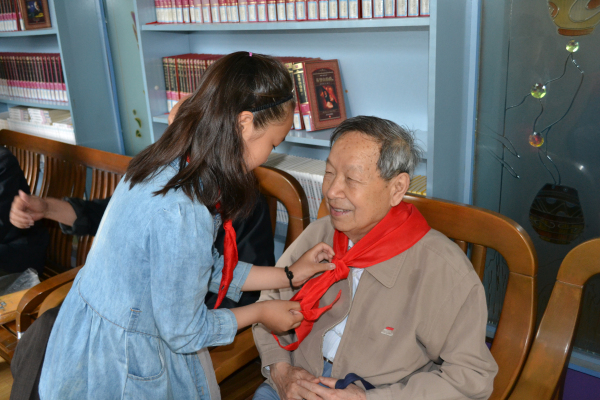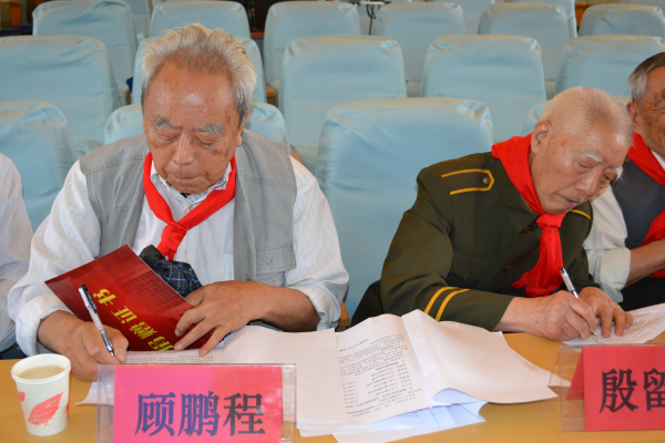 来到校园,在李忠顺校长的带领下,他们兴致勃勃地参观了校园,校园里的一草一木,仍是感到那样的亲切。庆祝活动中,学校少先队员为老校友们送上了代表祝福的鲜花,80多岁的恽秉良老先生亲自手写发言稿,和大家回忆了当年小学上学读书的情境,鼓励每位学生要认真学习、多读书,做一个对社会有用的人才。老校友们还为首届获得“青藤”奖学金的学子们颁发荣誉证书。观看了丰富精彩的庆祝活动后,每位老校友的心情都非常激动,顾鹏程老先生还即兴为大家朗诵的一首诗,激励西小的学生奋发向上,不断进取。