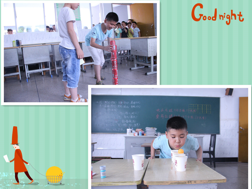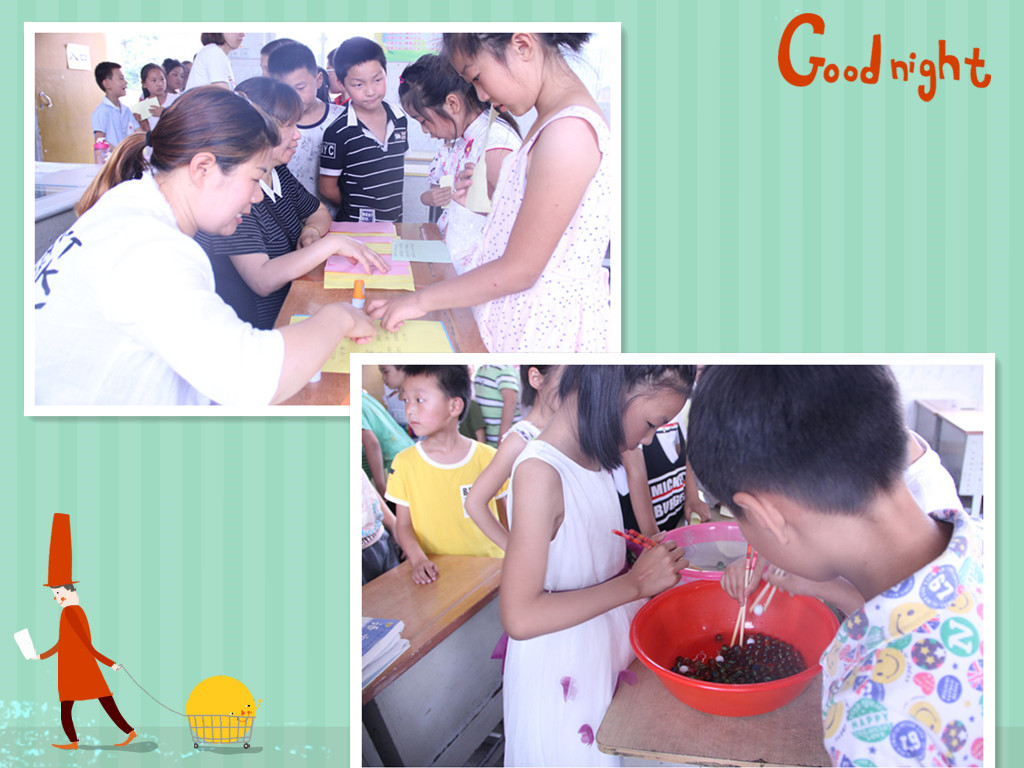 紧接着,各年级便迎来了压轴大戏——游园会。本次游园会以闯关形式进行,以年级为单位,每个班级是一个关口,总共是六个关口,大家凭手中的游园卡依次闯关。每一关口有相应的挑战项目,闯关者获取规定的战果便可以得到优秀章和合格章,并根据累积的个数,兑换相应的奖品。明白各馆要求后,同学们拿着自己的游园卡开始了闯关之旅。各个馆里都人流如潮,热闹异常。英语馆里,同学们屏气凝神,努力回忆自己学到的单词,准确的发音常常引来阵阵掌声。音乐馆里,悠扬舒缓的旋律让闯关者陶醉,大家在歌声中畅想欢乐的童年。知识馆里,更是排起了蜿蜒曲折的长龙,同学们都把这里当成了自己课外知识的“检验场”。体育馆里,挑战者个个使出浑身解数,用汗水和拼搏强健自己的体魄。数学馆里则宁静如夜,挑战者在专心致志地心算着。游戏馆是最热闹的地方,同学们在游戏中的搞笑行为,不时引得围观者的一阵哄笑……