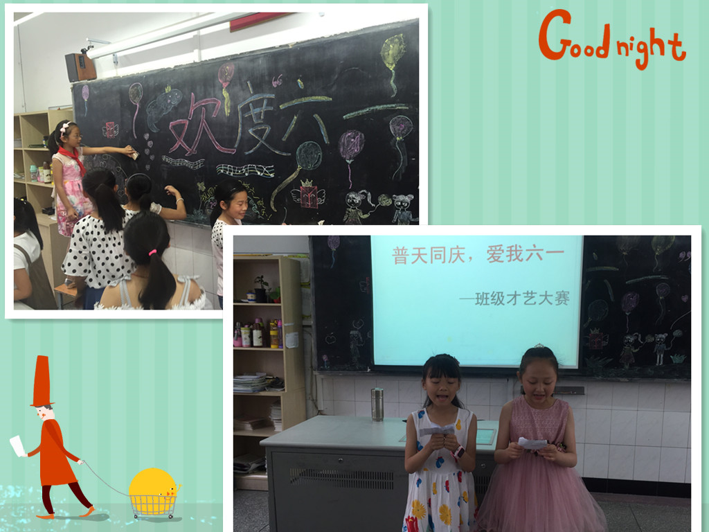 六一儿童节当天的第一个活动就是班级自行召开联欢会。为了还同学们一个完全属于自己的儿童节,各班的联欢会基本是由学生自导自演的。特别是在活动的前几天,一有空闲时间,大家便热火朝天地聚在一起商讨方案,排演节目。联欢会上,同学们个个摩拳擦掌,全心全意地展示自己的才艺。为了无愧这个舞台,更为了致敬自己的童年,大家使出“十八般武艺”,都拿出了看家本领。一时间,悦耳动听的歌声、精彩饱满的朗诵、优雅欢快的舞姿,让同学们赞不绝口,生动有趣的小品、诙谐搞笑的脱口秀不时引来阵阵哄笑,稀奇好玩的魔术表演,更是让大家大饱眼福。