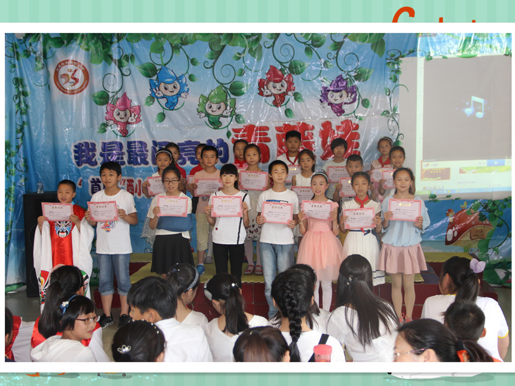 班级联欢会圆满结束后便是我校首届“校园十佳歌手”总决赛。参赛的17位选手都是从年级组复赛中脱颖而出的。“好声音”初赛早在上两周便开展了,各班以自主申报的形式确定候选人,再利用班队和夕会课时间,候选人通过自备伴奏进行了现场竞演,最终由两位晋级的选手参加年级组复赛。复赛评委由音乐组老师和两名家委会成员组成,比赛现场,平日里勤加苦练的选手们使出了浑身解数,以饱满的激情放声歌唱,铿锵有力、婉转悠扬的歌声感染着现场每一个观众。在一番较量后,各年级选出三位歌手角逐儿童节当天的总决赛。六一这天,17位“音乐达人”使出浑身解数,大家用浓厚的情感和精湛的唱功展现出“西小青藤娃”的靓丽风采。最终,在紧张而有趣的对决中,出炉了我校首届“十佳歌手”。