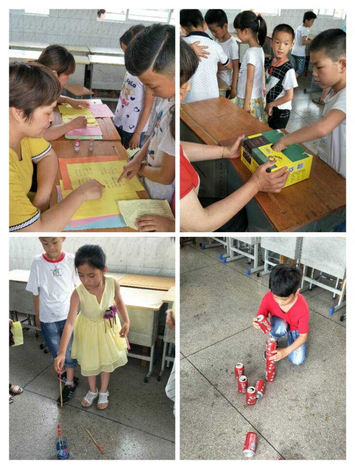 活动当天,全校小朋友欢天喜地,神采飞扬,迎接自己的节日。为了使小朋友们充分感受到节日的气氛,各班小朋友还精心准备了文艺节目:小朋友歌唱、舞蹈、武术、电子琴独奏、古筝独奏、做游戏等大家喜闻乐见的形式表达了自己心中的喜悦之情。学校分班开展符合年段特点的丰富多彩的游艺活动。游艺活动以每个中队为单位,根据自己的创意布置教室、构思活动,达到吸引学生的目的。走进教学楼逛一圈才发现各中队活动内容无奇不有。类似“夹弹珠”、“幸运彩球”、“抢板凳”这样的传统活动自然不需要过多的宣传,以它们独有的长久的魅力吸引着一大批的学生;但是诸如“筷筷瓶安”、“七巧板拼图”、“吹乒乓球”这些新鲜的创意游戏同样拥有一批眷顾者;整个“庆六一”游艺活动,既体现了小型灵活多样的特点又把同学们的情绪调到最高点。同时让学生们的智慧和潜力在活动中迸发,让欢乐的笑声在校园回荡。