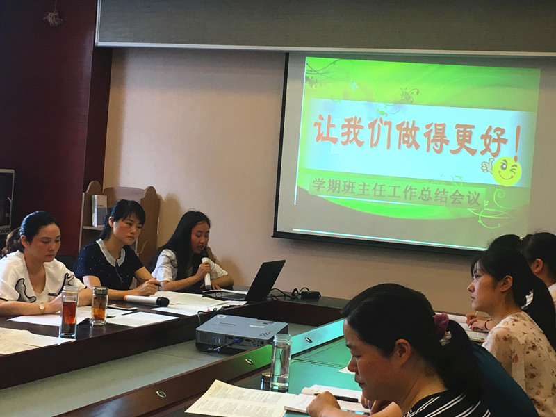 本次会议由学生处王瑛主任主持,李校长、王校长和全体班主任参加。会议共分三项议程:1、优秀班主任代表作交流;2、民主评议优秀班主任;3、布置暑假工作。