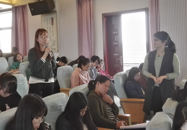 互动让现场的交流氛围更加浓烈。梁议华老师根据年级组“水果娃娃”动手实践活动谈唤醒教育对学生潜能的激发以及对家长参与度的提高。周红芳老师感慨到:“教育的幸福就是看到千叮万嘱的话语转化成了学生养成的良好习惯,看到学生的成长就是我们的幸福。”陈赵贤老师从自身的课堂教学实情分享她的成长心得:教育要学会放手,给学生体会的机会。