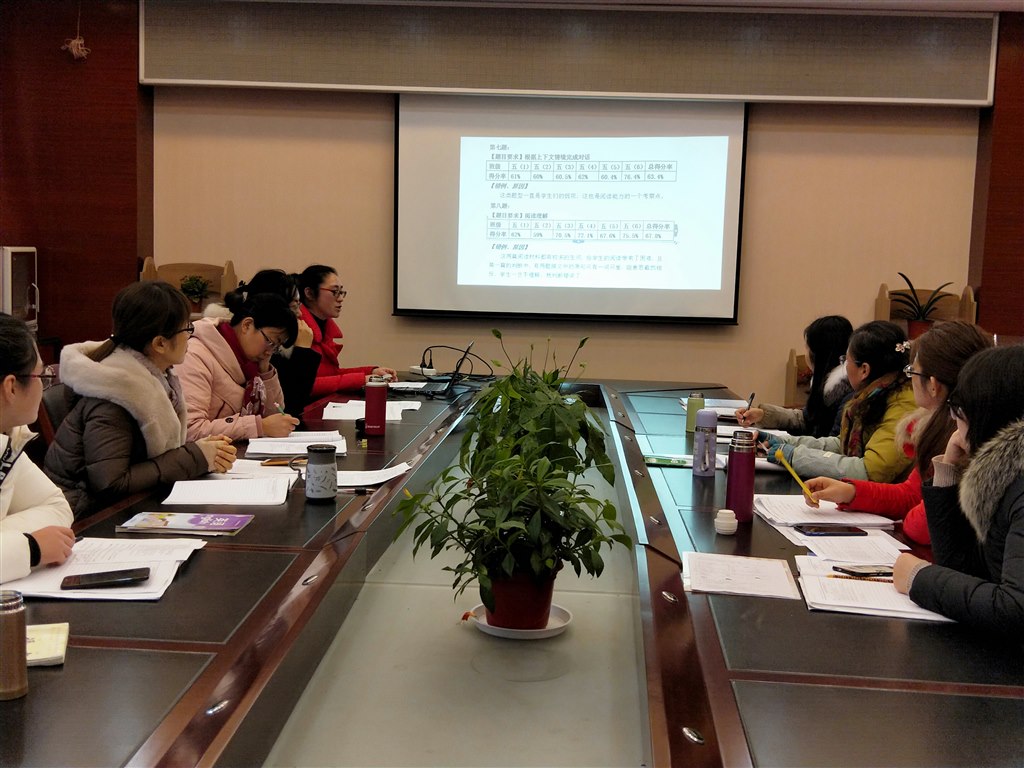 1月23日,西夏墅中心小学三到六年级英语教师在自主楼三楼会议室开展了英语组期末质量分析会议,本次会议由教研组长陆丽君老师主持,王芳校长、邹丽琴主任莅临指导。
