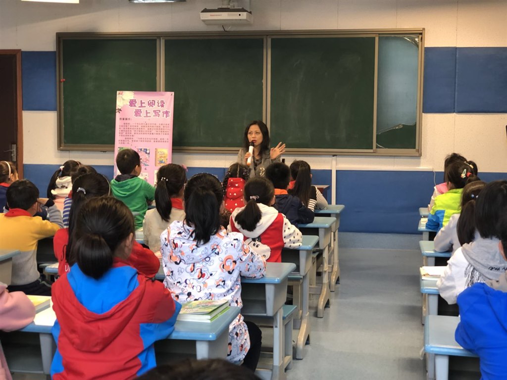 春柳吐芽花展屏, 日和风暖鸟争鸣。 2018年4月15日下午2时许,著名儿童文学作家郁雨君光临西夏墅中心小学,师生期待已久的“作家进校园”活动拉开帷幕。郁雨君被书迷成为“辫子姐姐”,是一位高产作家,著有“辫子姐姐心灵花园”“辫子姐姐梦工场”等系列作品。