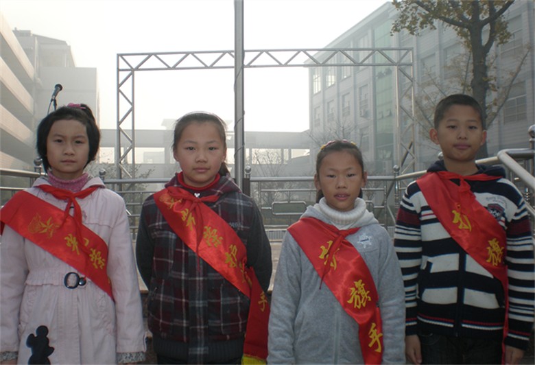 左(二) 我是四(2)班的护旗手刘汐。我是一个活泼可爱的阳光女孩。在班里担任英语课代表和语文组长,是老师得力的小助手。我爱好广泛,还能写一手好字。成绩属于过去,我会再接再厉更上一层楼的。