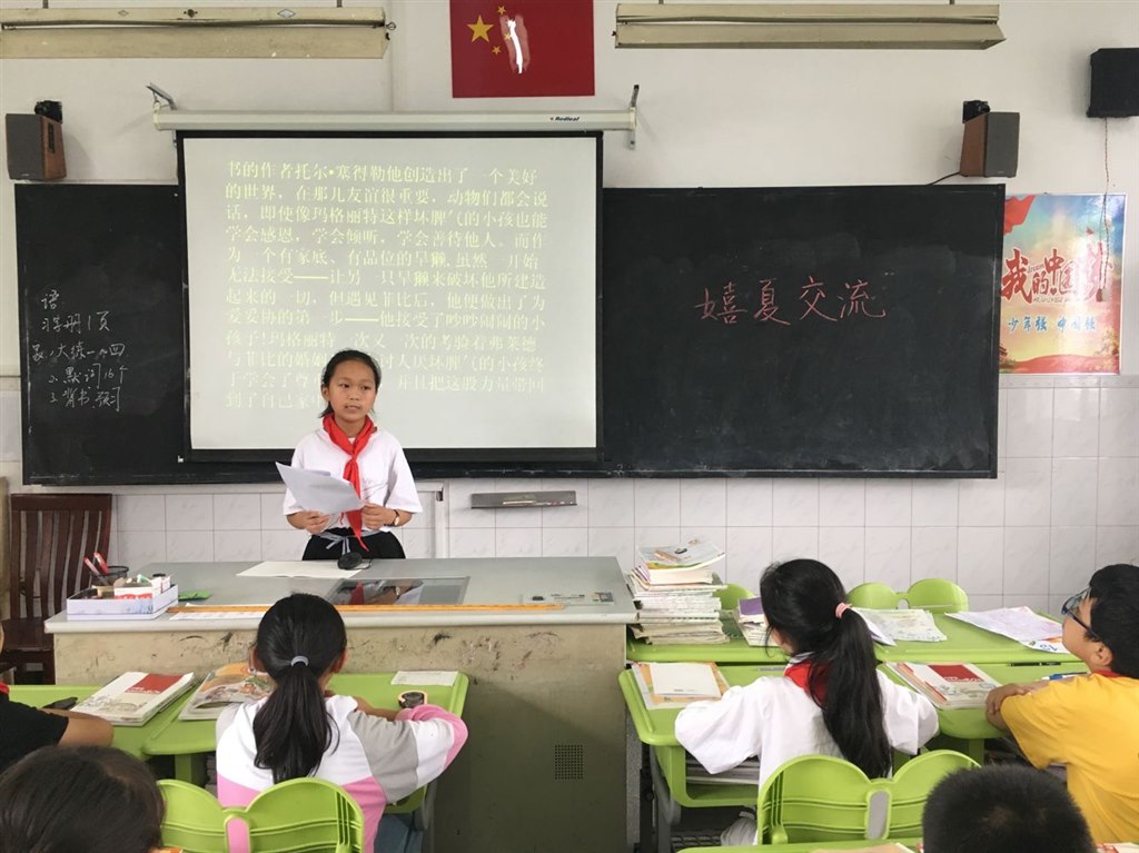 每年秋学期开学第一天,我校都会迎来孩子们特别期待的“嬉夏”成果分享会。“小脚丫走中国”课上,同学们化身“小导游”,领着大家共同领略和“畅玩”祖国的大好河山。面对照片、视频中的山山水水、划船漂流、美味大餐、搞笑合影,作为观众的孩子们都瞪大了眼睛,“哇哇哇”的惊讶声此起彼伏,眼前的祖国“美景”既让他们向往,更让他们骄傲。“我是小能手”课上,孩子们交流假期学会的新家务,叠衣、洗碗、拖地、做菜……,她们用行动告诉大家,什么是真正的成长。还有一部分同学则通过现场操作和视频回望的方式展示了自己暑假中学习或提升的新技能,比如乐器演奏、书画、毛笔字、轮滑等等。从这些展示中,我们可以看到孩子们在多个方面可喜可贺的进步与发展。“我是演说家”活动中,同学们依托制作好的ppt或思维导图,结合自己的肢体语言,带领大家遨游在好书的世界里。同学们赞叹于一个个简洁凝练的人物介绍,一段段精彩纷呈的典型剧情,一句句发人深省的心灵鸡汤。“我是朗读者”展示中,伴随精心挑选的配乐,孩子们深情朗读美文片段。那抑扬顿挫的音调、优雅如玉的文字,引着其他同学来到神奇的文学殿堂,久久不忍离去。,