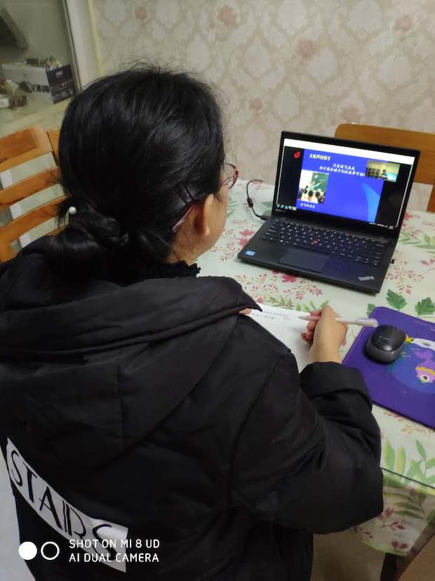 研修中,英语组的每位老师都认真观看直播,一个个神态专注,在这特殊的延长假期里,充电蓄能。