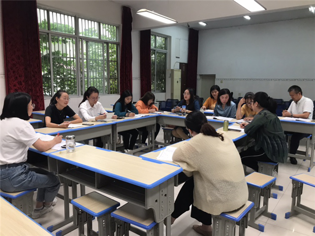 听课过后,大家分组进行了研讨。周忠益校长针对本节教研课的教学设计、课堂教学方面等进行了专业的点评并提出建议。他肯定了陈老师的课堂:教学环节层次和目标循序渐进、环环相扣,能够充分发挥教师的主导作用、调动学生的积极性,能够关注学生的学习情况并进行有效评价,教学语言简洁明了、干脆清晰。陈莉校长提炼了学生常规的具体要求:首先,小组交流时,老师的要求要设计合理,确定好学生资源的呈现方式。其次,培养学生小组合作常规,交流的小组能面朝大家,自信、完整地表达出自己的想法,其他小组能补充并提出质疑。然后,老师需先提出重复学生回答的要求,使学生能够带着目的认真倾听,并且学生的眼神、坐姿需达到认真倾听的状态,在倾听过程中能及时评价。
