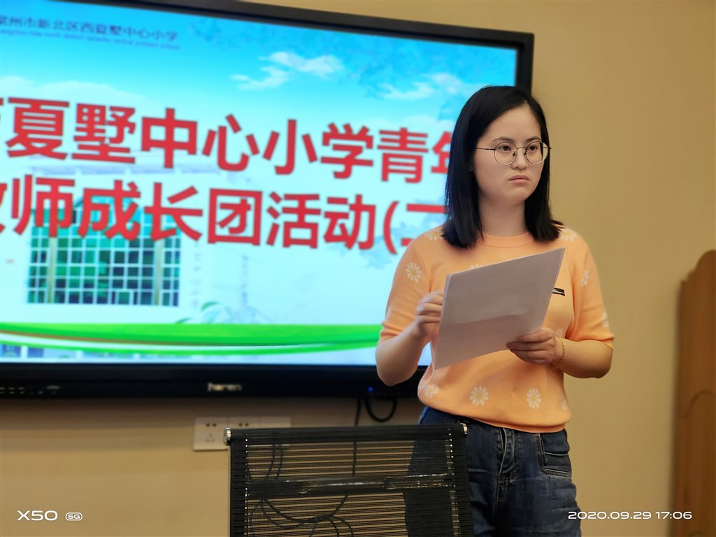 金色的九月,洒下金色的梦想;肆溢的秋风,吹拂着希望的心房。为了促进青年教师专业化发展,提高基本功水平,提升良好的职业素养,西夏墅中心小学举行了青年教师成长团第二次活动。此次研讨活动由课程教学处方婷主任主持。