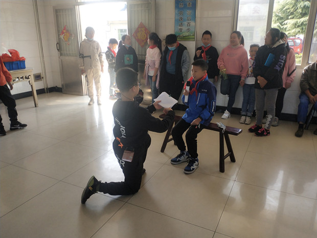 文艺汇演是本次活动的中心环节,为了让文艺汇演的准备环节有序进行,中队里设置了临时“机构”——参演报名处,登记演员和节目名字,由一位队员负责日常运营。随后的时间里,队员们结合自己的特长,有建立组合的,有个人参演的,内容不仅有唱歌、跳舞,还有小品、相声、讲故事,可谓种类繁多、精彩纷呈。大家至“参演报名处”报名登记后,便开始利用课间、放学后、假期时间进行排练。为了提高节目的质量,队员们还去请教了音乐老师和家长,帮他们参考剧本、纠正问题等等,力争让自己的表演更上一层楼。这种严谨认真、精益求精的态度和精神不禁让人动容。在队员们紧锣密鼓地准备节目时,家长们主动联系辅导员老师,要求也能为敬老院的老人们做点事,献出自己的绵薄之力。中队里的学校家委祁宇辰妈妈主动担起了组织之责,她收齐家长的爱心款,为68名孤寡老人分别订做了一份重阳糕和一些小礼品。队员们还从龙虎农耕园里拔了整整一袋红薯,准备将自己的劳动成果分享给老人们。