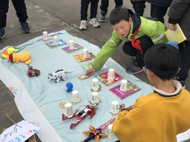 终于赢来了大展身手的时刻!短短15分钟,书海遨游区(书籍类)、舞文弄墨区(文具类)、酷乐潮玩区(玩具类)、美丽生活区(手工装饰类)、等你来“战”区(娱乐游戏类)五大区域就摆满了各班的摊位。下午两点,活动正式开始!低年级小朋友在家长志愿者的带领下来了,他们人小鬼大,在志愿者的指导下学习讨价还价,买到了心仪的故事书、文具、玩具、小饰品等,再来到娱乐游戏区过把瘾,别提多开心了!