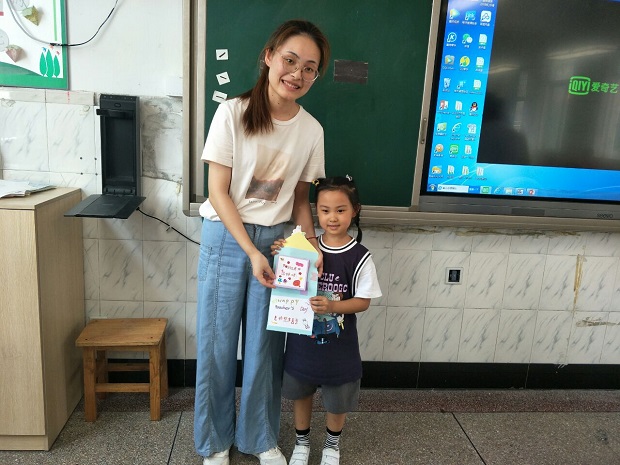 有的同学还在爸爸妈妈的帮助下手工制作了一张精美的贺卡,她拿着贺卡一摇一摆地缓缓走到老师跟前“老师,这是送给您的!是我和爸爸妈妈一起做的。”忽闪忽闪的大眼睛里满满都是对老师的崇敬与喜爱。两只撑开的小手,就像小天使的翅膀在扑棱着。纯净美好的幼小心灵在这个绿色的教师节里显得格外耀眼。