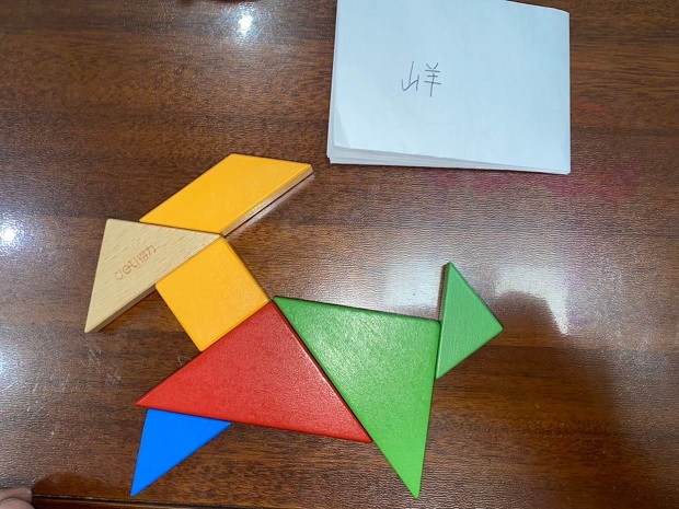 二年级的同学们学习了有趣的七巧板。七巧板是中国古代劳动人民的发明,《冷庐杂识》中写道“近又有七巧图,其式五,其数七,其变化之式多至千余。体物肖形,随手变幻,盖游戏之具,足以排闷破寂,故世俗皆喜为之。同学们就利用了七巧板拼出了许多图案,有小鸟、有小狗、有狐狸、还有飞机……一个个惟妙惟肖。此外,同学们还将拼的图案画了下来,有活泼的小鱼、升空的火箭、可爱的房子等等。