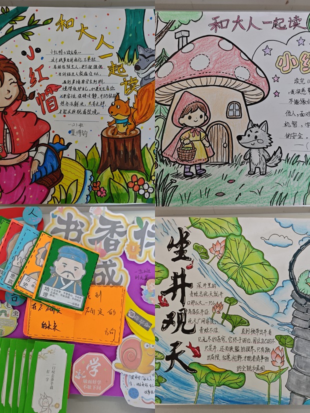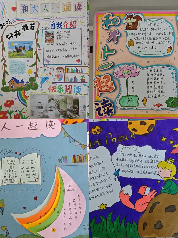 在整本书阅读的基础上,一年级学生开展了主题手抄报创作活动。孩子们围绕本学期阅读的经典书目《和大人一起读》,《小巴掌童话》进行创作。一张张色图文并茂的手抄报,不仅展现了孩子们对故事内容的理解,更体现出他们初步的审美能力和创作热情。各班在班级展示与评选中推选出多份优秀作品,并在年级内进行集中展示,营造出“人人爱阅读、个个乐表达”的浓厚氛围。